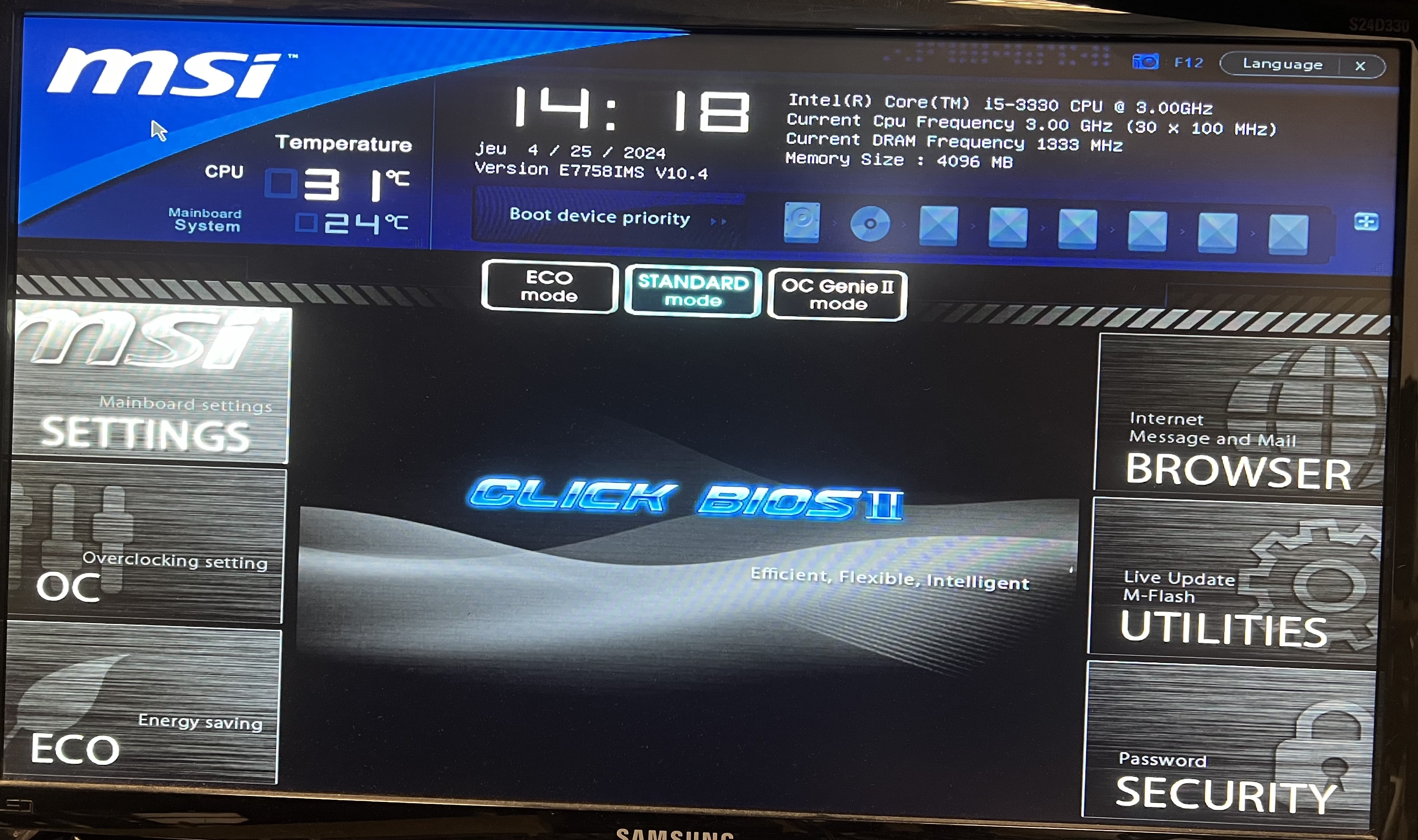 Carte Mère MSI B75A-G43 + i5-3330 + Ventirad + 8 Go DDR3